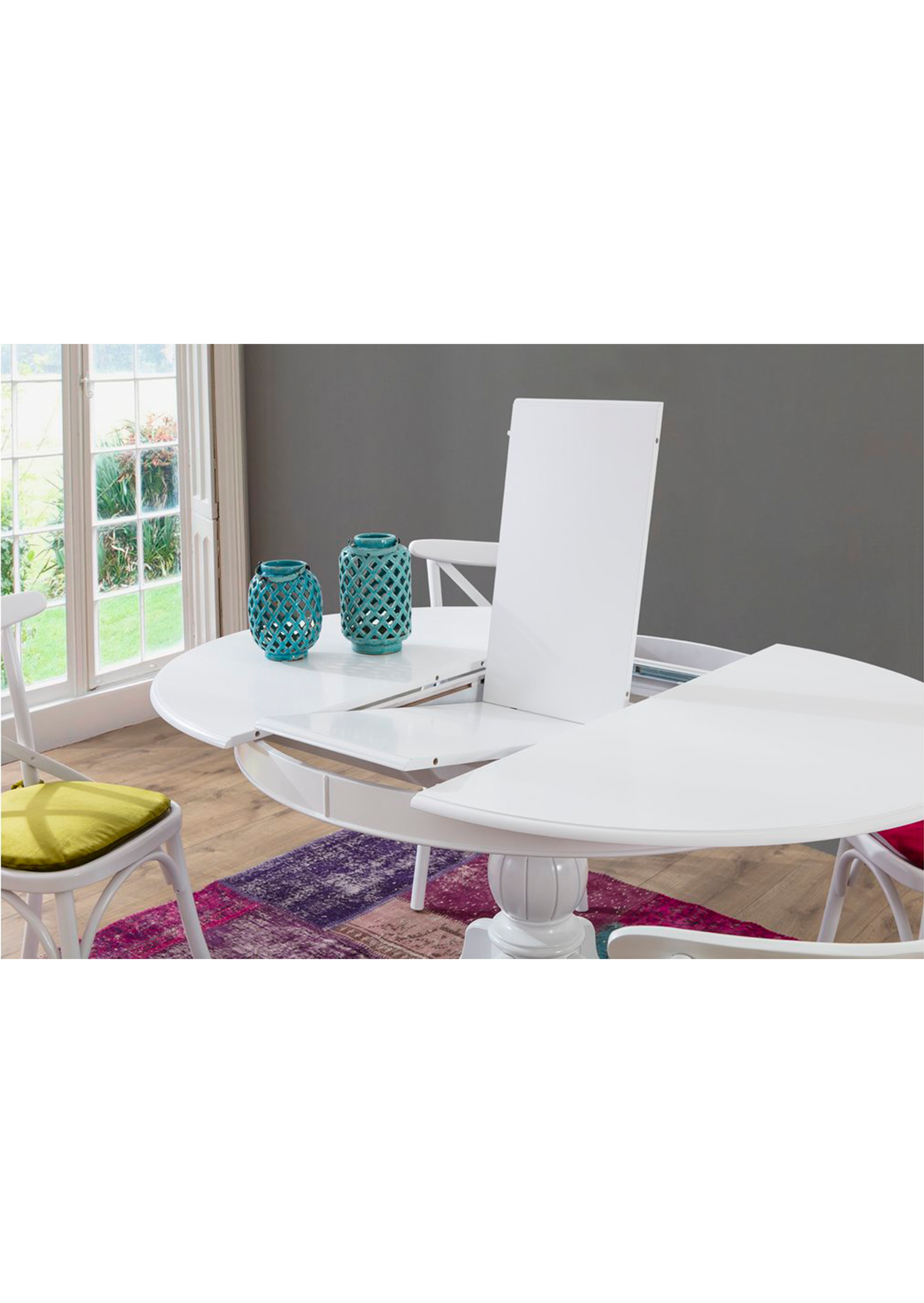 Esstisch Dalyan rund und ausziehbar, weiss, Durchmesser 118 cm