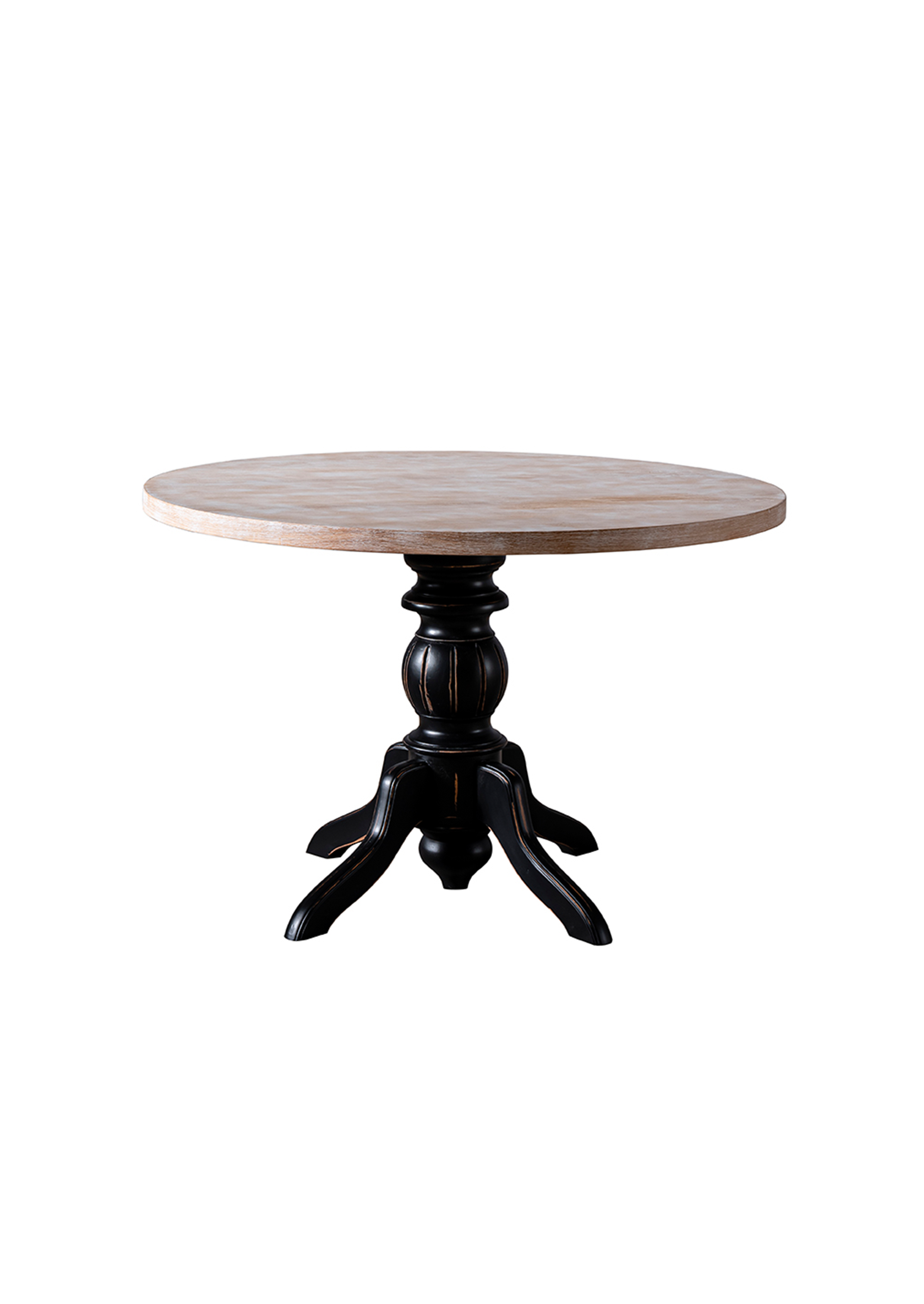 Erleben Sie einzigartige Momente mit unserem handgefertigten, runden Esstisch Lida in edlem vinatge schwarz.