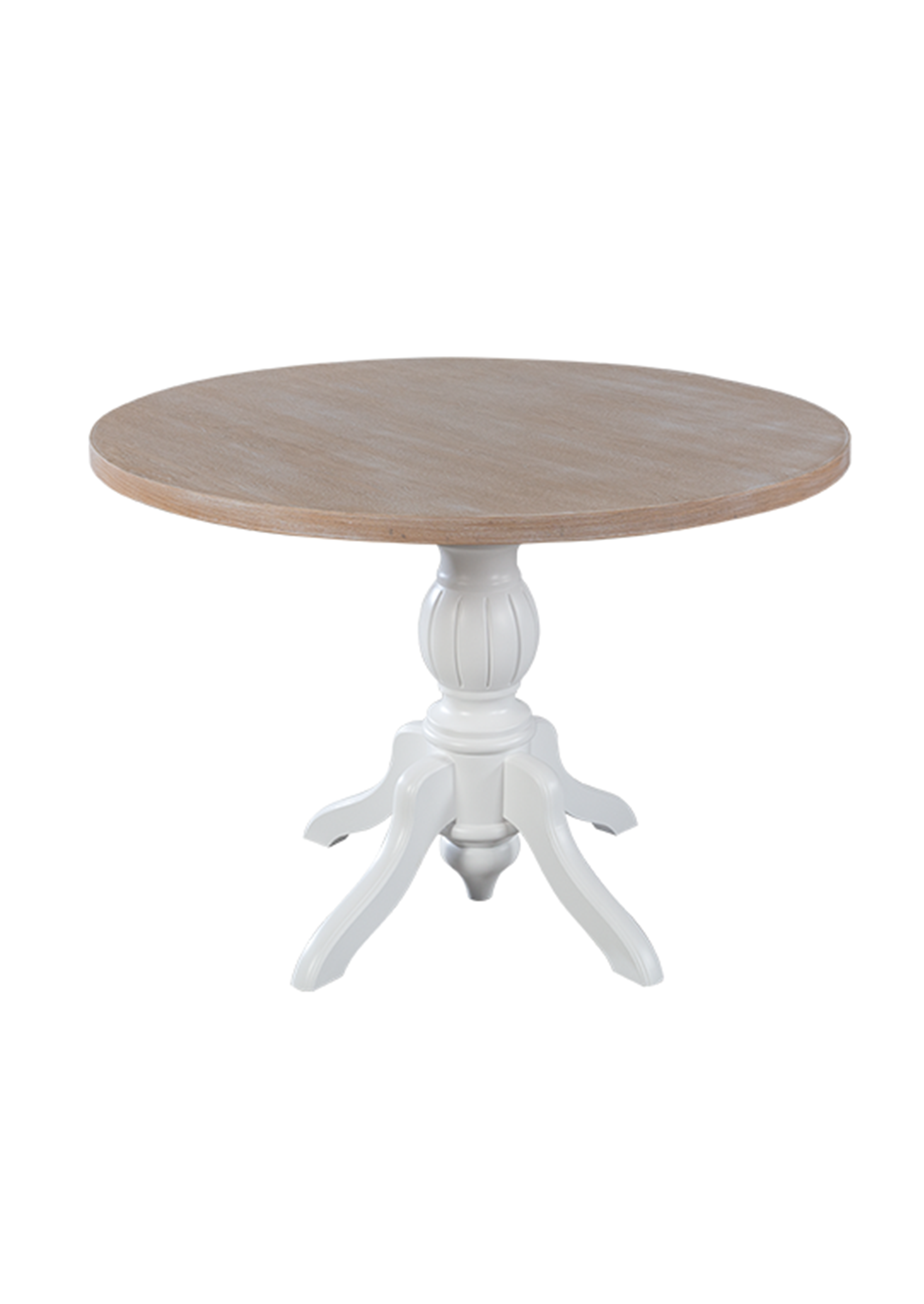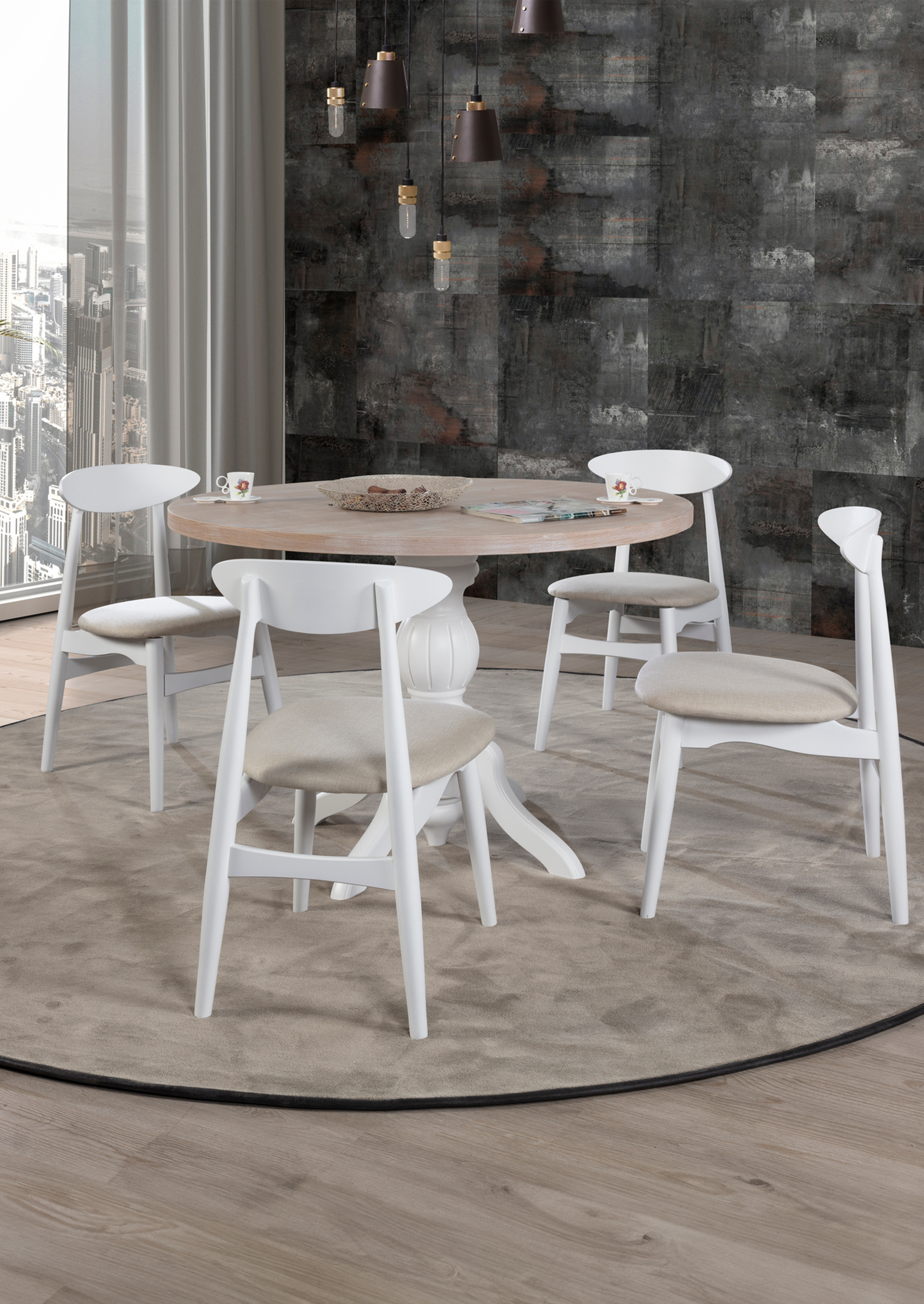 Erleben Sie echte Handwerkskunst mit unserem handgefertigten, runden Esstisch Tondo in braun weiss.