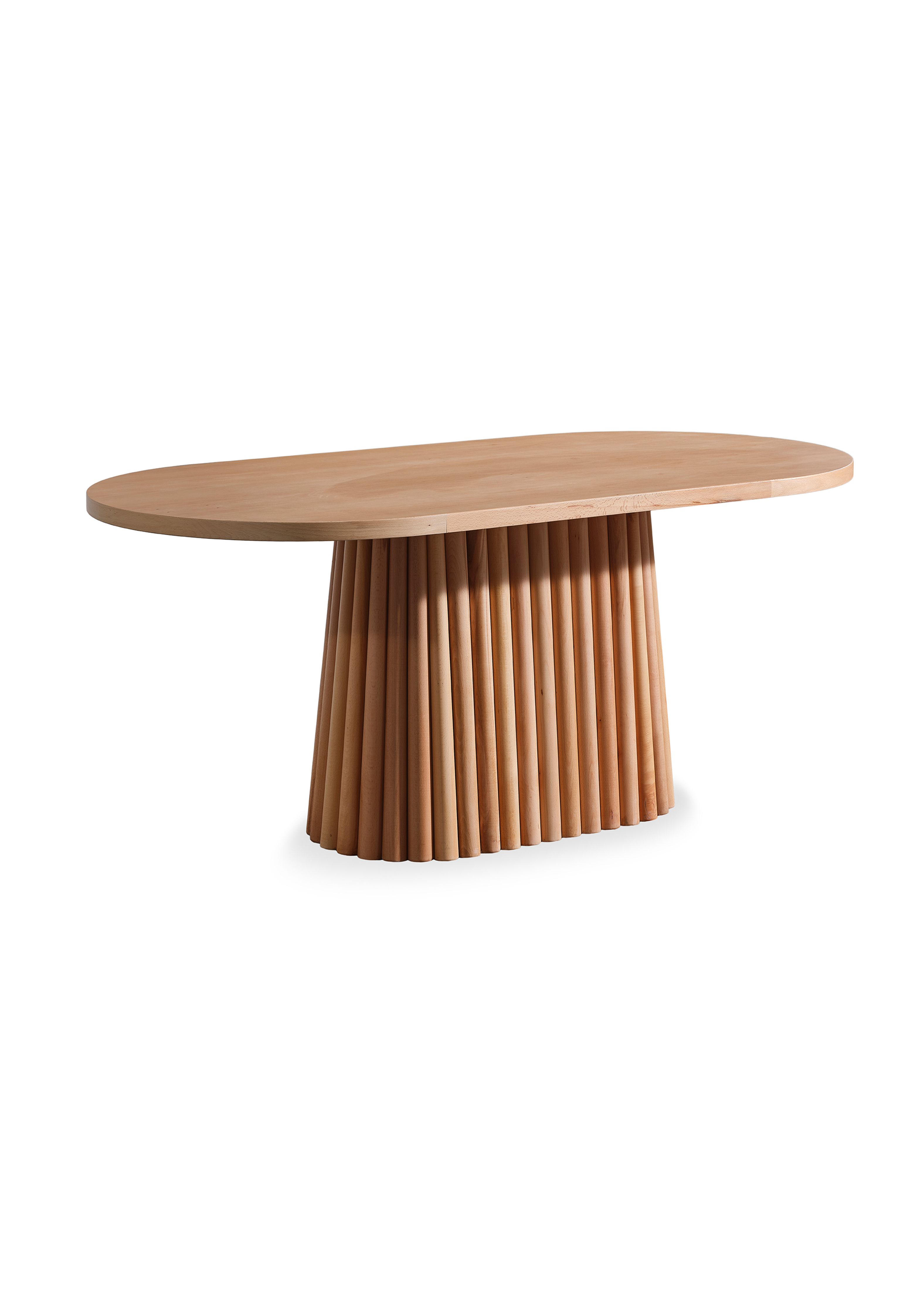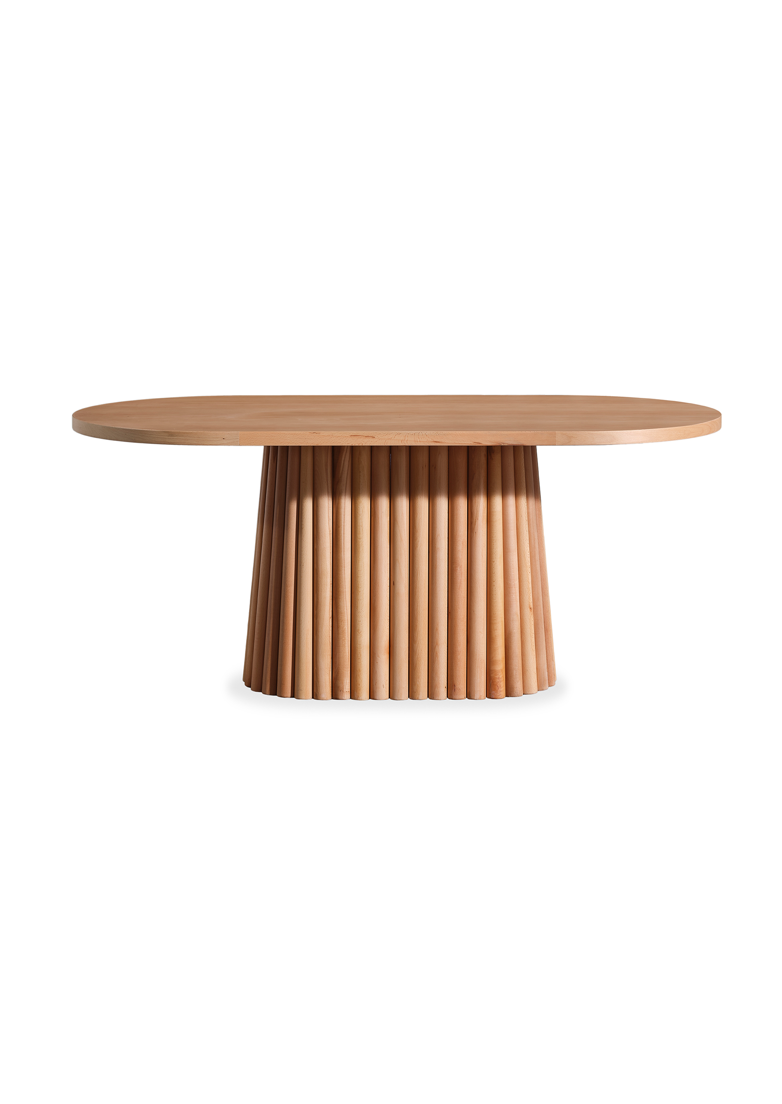 Erleben Sie einzigartige Momente mit unserem handgefertigten, ovalen Esstisch Melita. Die Oberfläche der Tischplatte ist aus