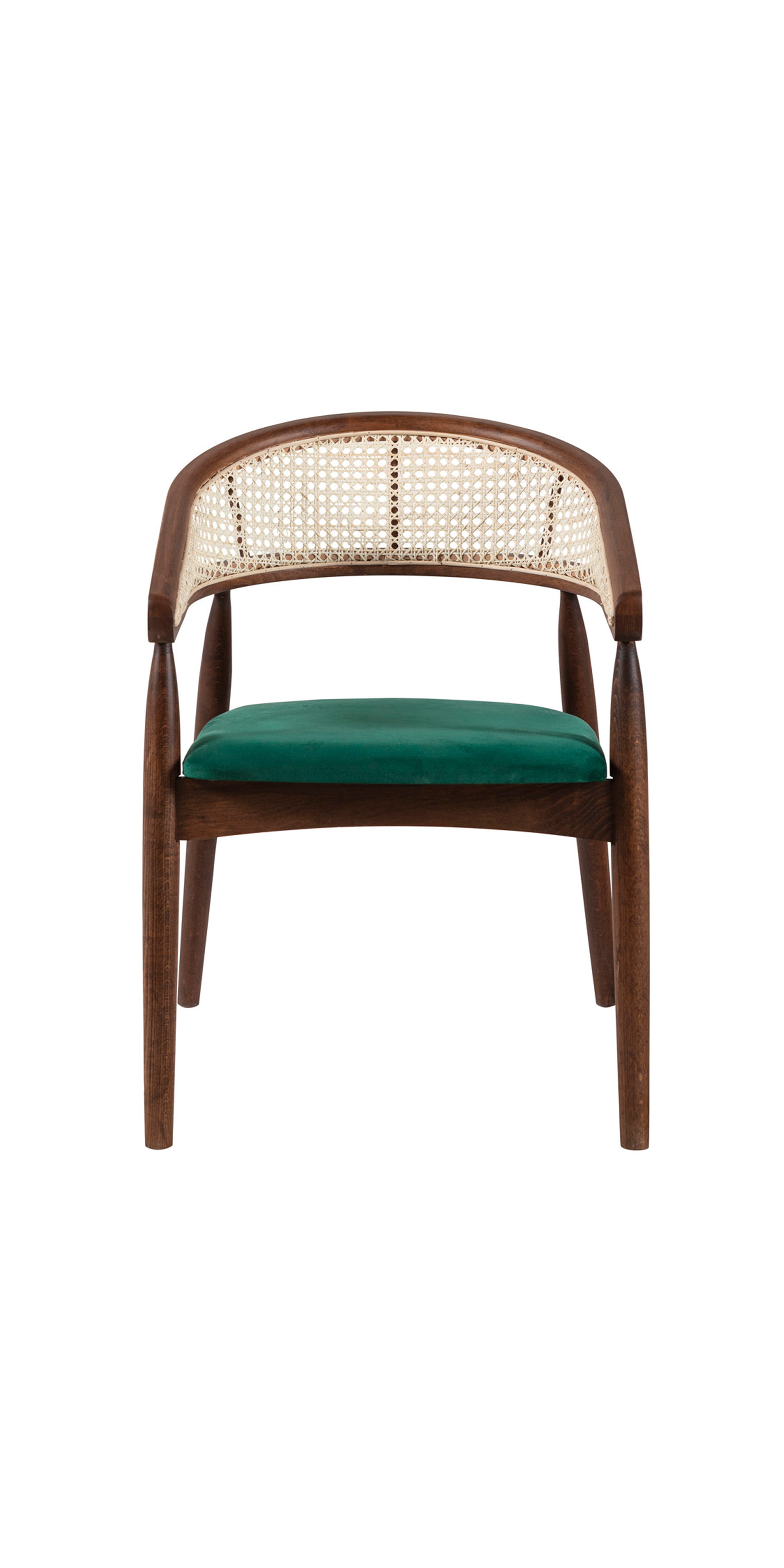 Die Sitzfläche, bezogen mit grünem Samtbezug, lädt zu stundenlangem Verweilen ein. Die natürliche, braune Farbe des Buchenholzes fügt sich harmonisch in jedes Esszimmer ein und strahlt zeitlose Eleganz aus.