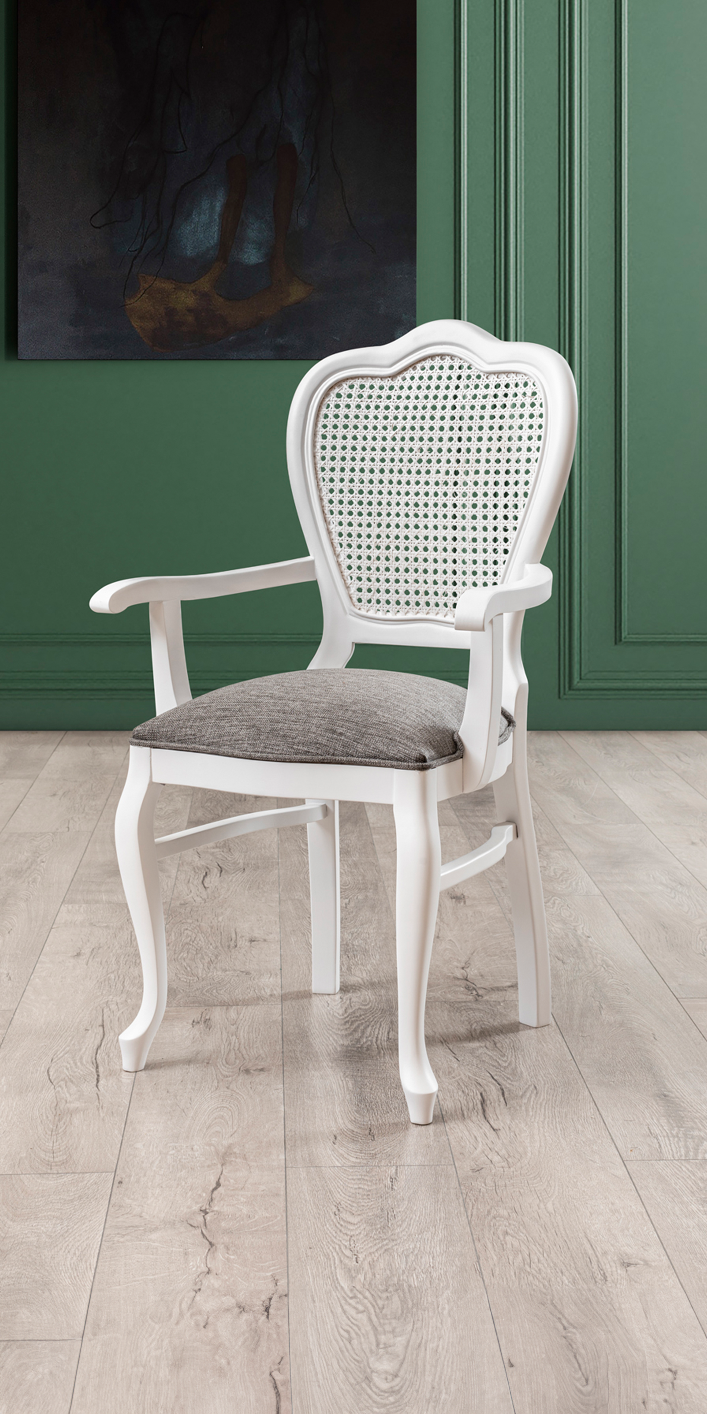 2er Set Esszimmerstuhl Leman | weiss | mit Armlehne | Buchenholz