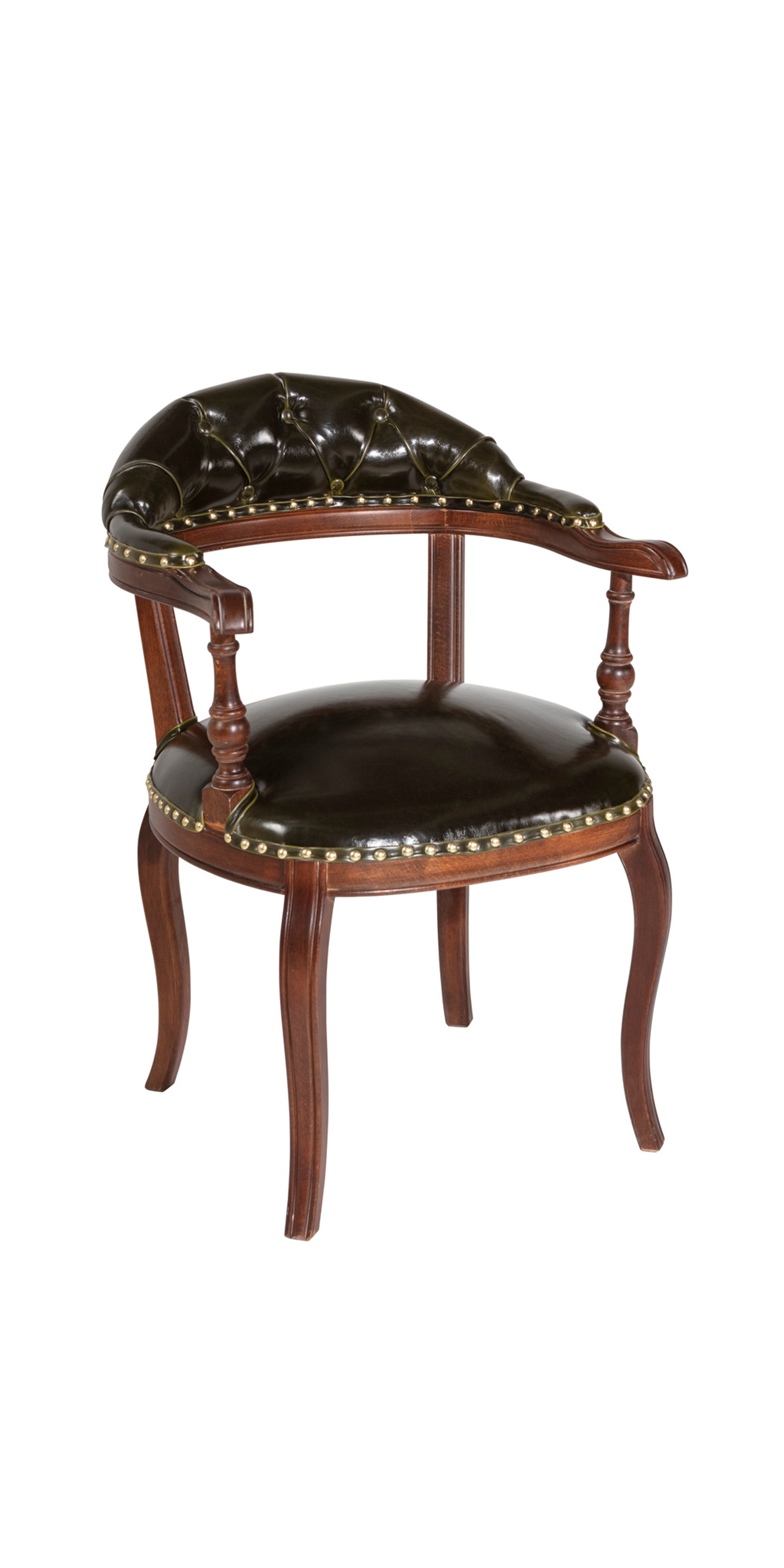 Die Sitzfläche, bezogen mit pflegeleichtem dunkelgrünem Kunstleder, lädt zu stundenlangem Verweilen ein. Die natürliche, braune Farbe des Buchenholzes fügt sich harmonisch in jedes Esszimmer ein und strahlt zeitlose Eleganz aus.