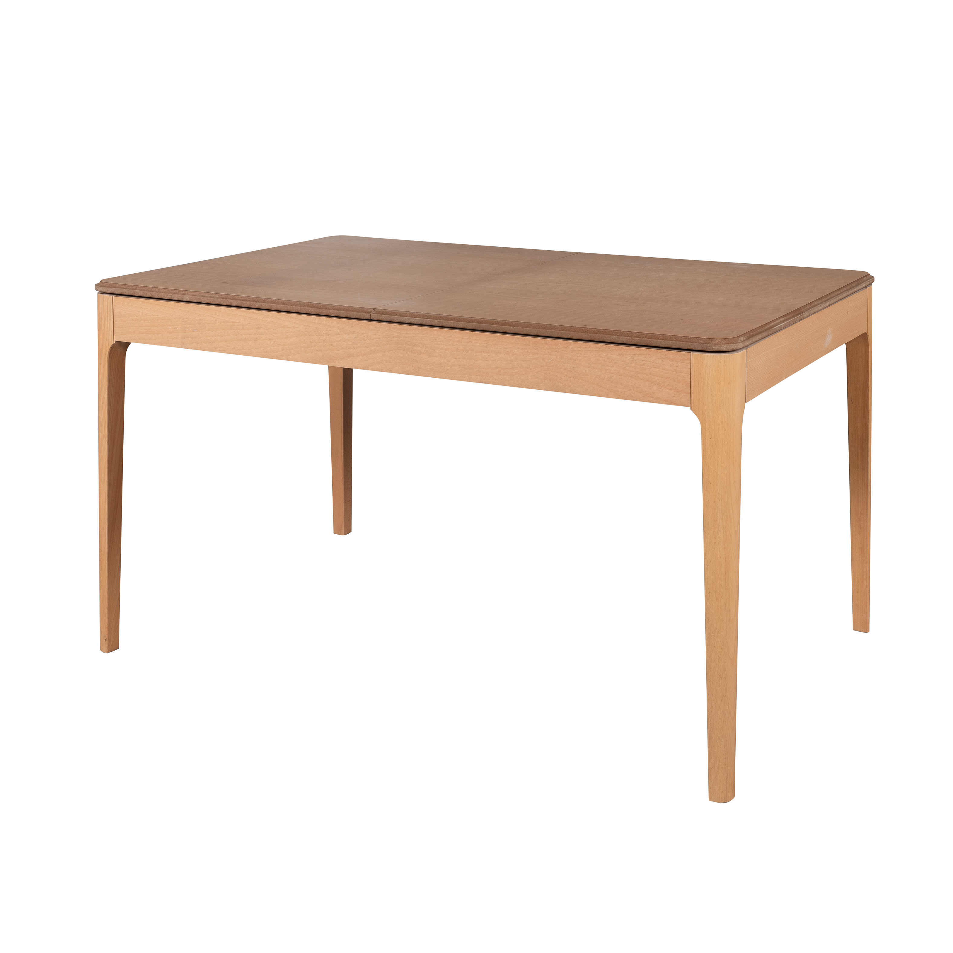 Tisch: Tischplatte matt-weiss, Tischfuß naturbraun